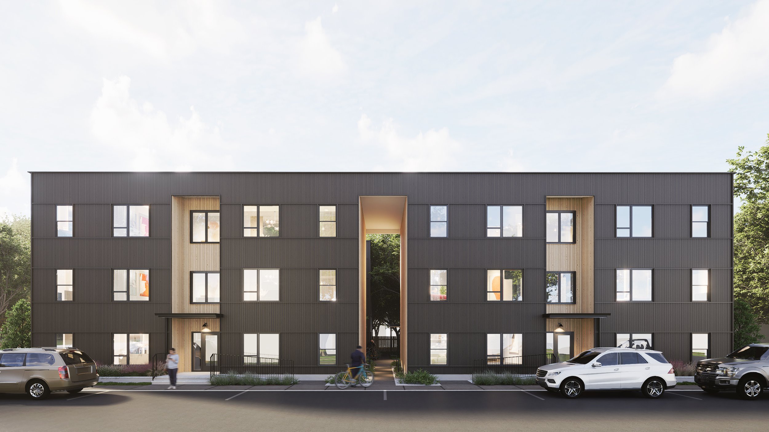 Designed to leverage its Transit-Oriented Development zoning, the project emphasizes walkability and bike accessibility, featuring a pedestrian pathway that runs through the center of the site as well as a dedicated enclosed bike storage structure. The development aims to thoughtfully increase neighborhood density while providing modern, efficient rental units suited for the local workforce and urban-minded residents.