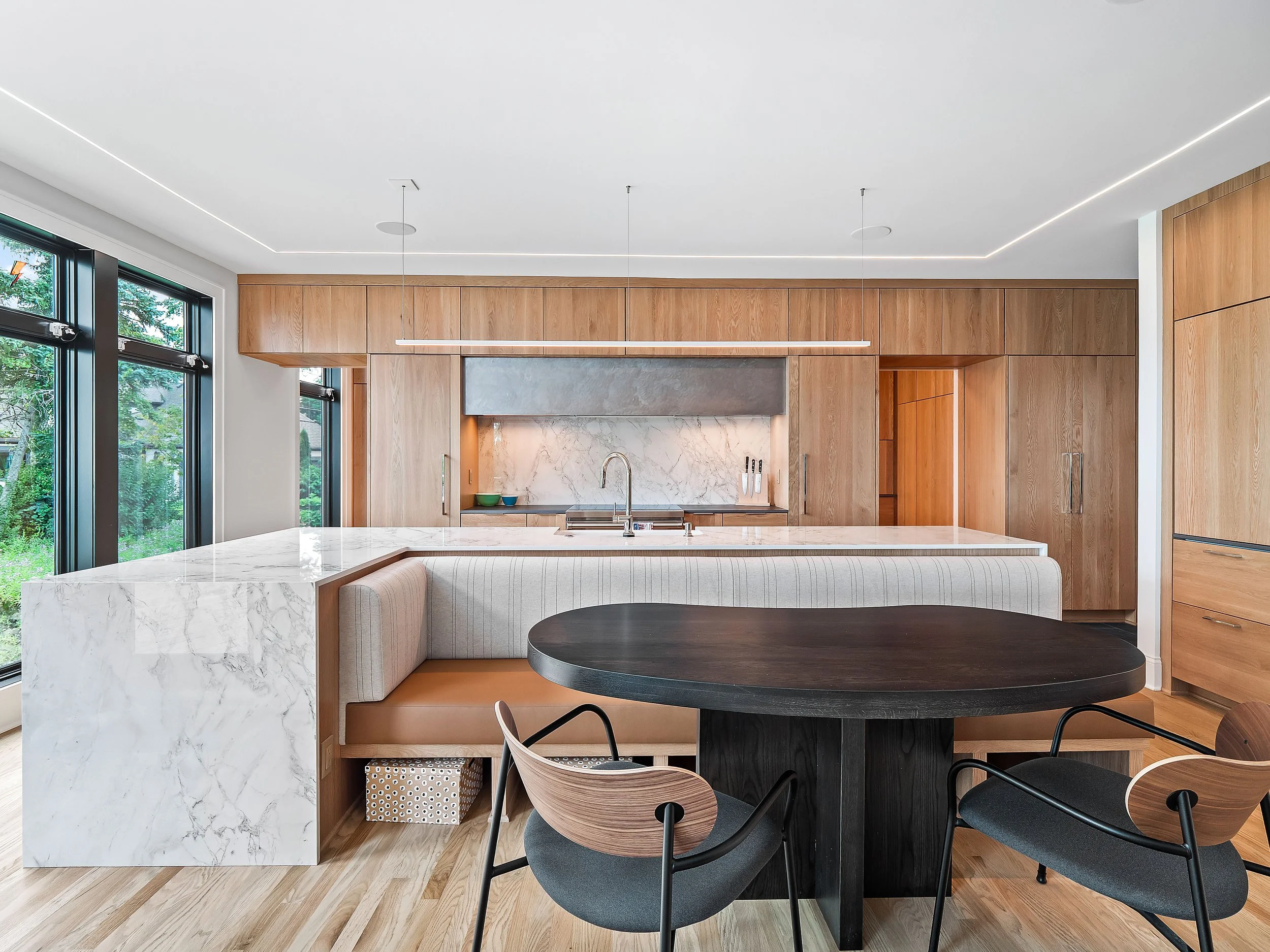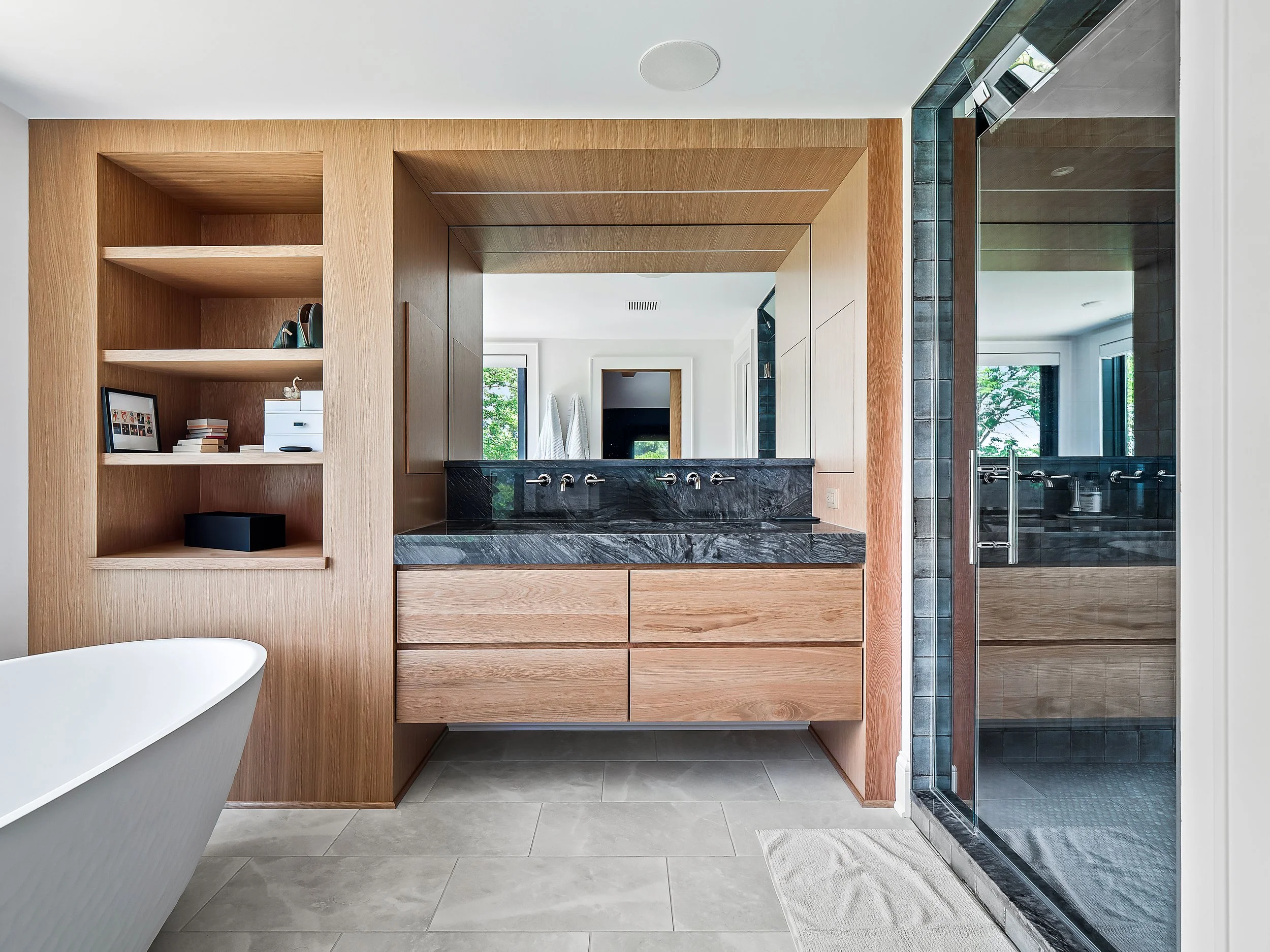 Our clients came to us with a clear project brief: update their newly purchased brick colonial to become a contemporary, sustainable and modern home. We developed a series of strategic interventions at the rear of the home that met their functional goals while balancing cohesive harmony and contrast to the existing home. An addition will expand the lower level living space, provide connection to the expansive yard, and create a new roof deck with lakefront views. The kitchen will expand into an existing porch space, and a new portal in the primary suite will give direct views to Lake Erie. Construction slated to begin Summer 2024.